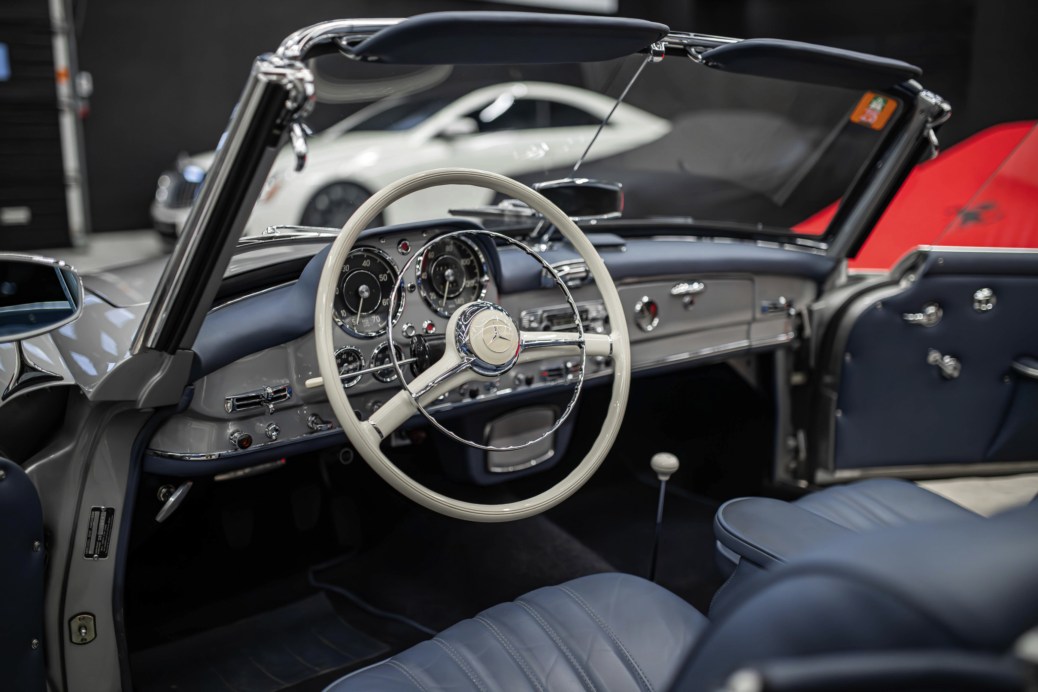 Одной из ключевых особенностей 190 SL была возможность устанавливать жесткий металлический верх. Это добавляло автомобилю дополнительную универсальность, позволяя ему быть как открытым кабриолетом для летних поездок, так и более защищённым автомобилем на холодные сезоны. Сегодня найти экземпляр в комплекте с металлическим верхом — большая удача.
